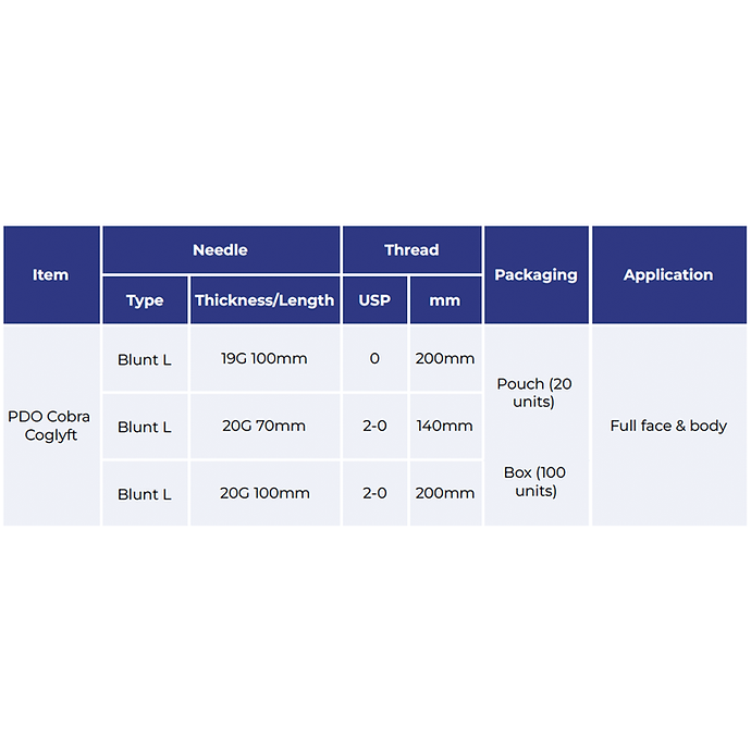 VIOLA Cobra Coglyft uses a blunt cannula in order to safely insert an absorbable barbed thread inside a deep, subcutaneous layer of the skin. Additionally, the VIOLA Cobra Coglyft uses a barbed PDO thread, CobraCogs, which is a dual-layer cutting method of the PDO suture. This ensures a firm anchoring effect of the skin in comparison to the regular cutting barbed threads.